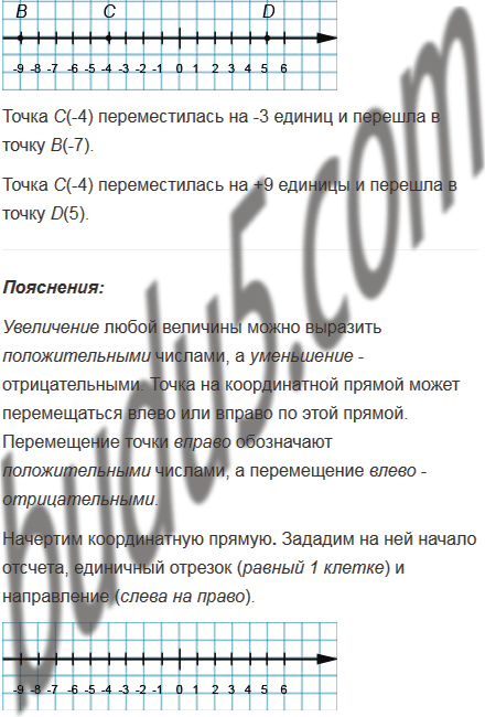 Отметьте на координатной прямой точку С(-4). Укажите точку В, в которую перейдёт точка С при перемещении по координатной прямой на -3, и точку D, в которую перейдёт точка С при перемещении на +9.
