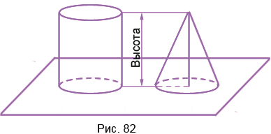 Объём цилиндра равен произведению площади одного его основания и высоты. Объём конуса в 3 раза меньше объёма цилиндра с таким же основанием и высотой (рис. 82). Вычислите объём цилиндра и объём конуса, у которых высоты по 12 см и радиусы оснований по 2 см.