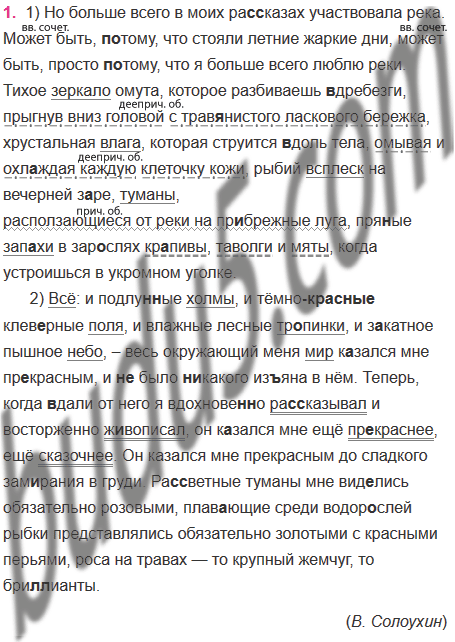 1) Но больше всего в моих ра..казах участвовала река. Может быть (но)тому, что стояли летние жаркие дни может быть просто (по)тому, что я больше всего люблю реки. Тихое зеркало омута, которое разбиваешь (в)дребезги прыгнув вниз головой с трав..нистого ласкового бережка, хрустальная влага, которая струится (в)доль тела омывая и охл..ждая каждую клеточку кожи рыбий всплеск на вечерней з..ре туманы расползающиеся от реки на пр..брежные луга, пря..ые зап..хи в зар..слях кр..пивы, таволги и мяты, когда устроишься в укромном уголке.