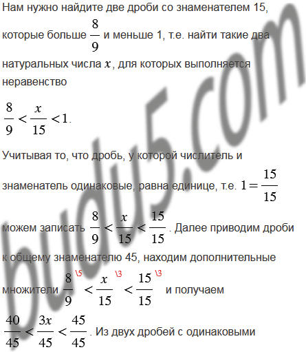 Найдите две дроби со знаменателем 15, которые больше и меньше 1.