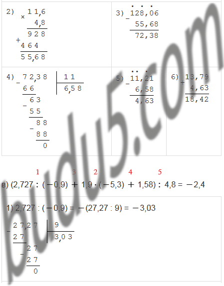 в) (2,727 : (0,9) + 1,9(5,3) + 1,58) : 4,8;