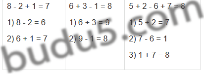 8 - 2 + 1 = ![]() | 6 + 3 - 1 = ![]() | 5 + 2 - 6 + 7 = ![]() |