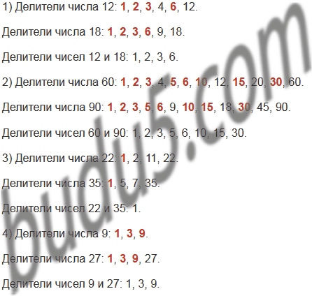 1) 12 и 18; 2) 60 и 90; 3) 22 и 35; 4) 9 и 27.
