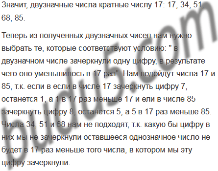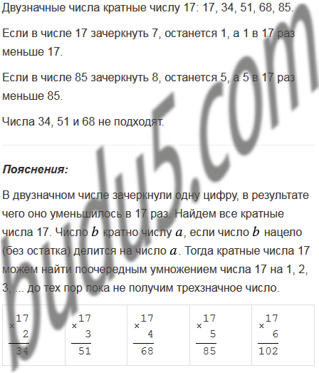 В двузначном числе зачеркнули одну цифру, в результате чего оно уменьшилось в 17 раз. Какую цифру и в каком числе зачеркнули?
