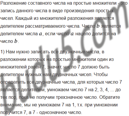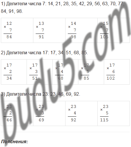 Запишите все двузначные числа, в разложении которых на простые множители один из множителей равен: 1) 7; 2) 17; 3) 23.