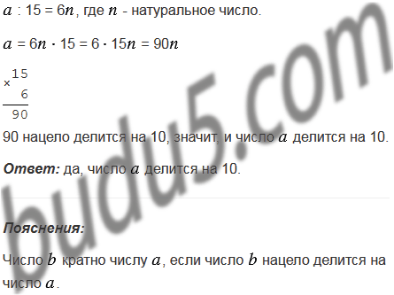 При делении нацело числа на 15 получили число, кратное 6. Делится ли нацело число на 10? Ответ обоснуйте.