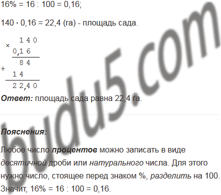 Агрофирма владеет 140 га земли, 16% которой занимает яблоневый сад. Найдите площадь сада.