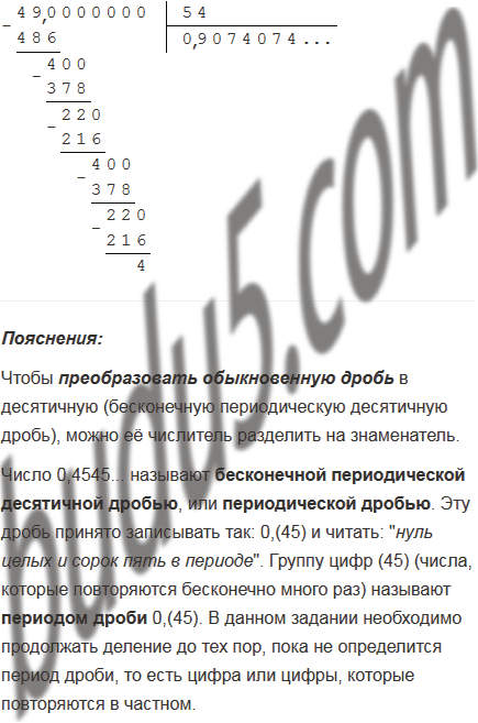 Преобразуйте обыкновенную дробь в бесконечную периодическую десятичную дробь и укажите её период: