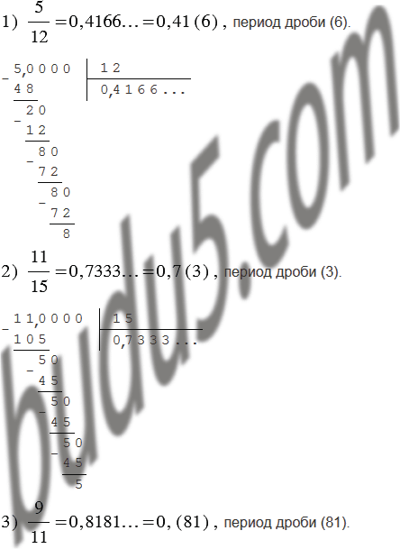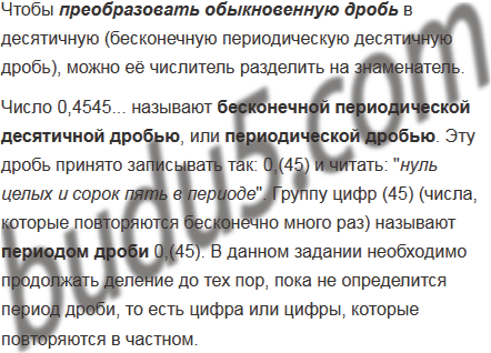 Преобразуйте обыкновенную дробь в бесконечную периодическую десятичную дробь и укажите её период: