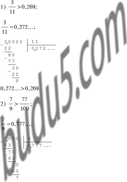 Сравните дроби, записав предварительно обыкновенные дроби в виде конечной десятичной дроби или бесконечной периодической десятичной дроби: