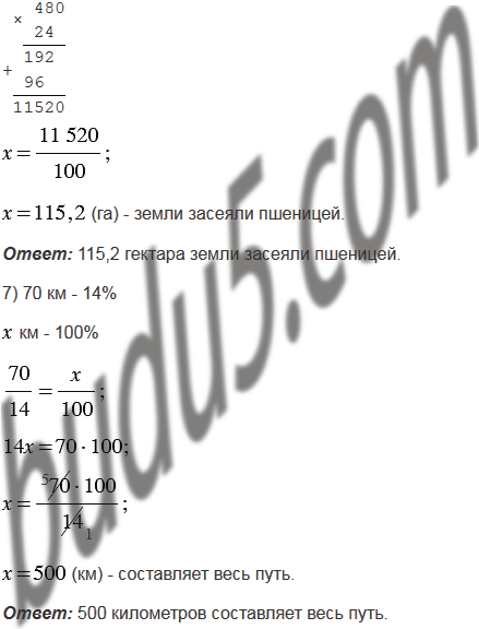 6) Площадь поля 480 га. Пшеницей засеяли 24% площади поля. Сколько гектаров земли засеяли пшеницей?