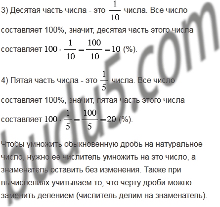 Сколько процентов числа составляет его: 1) половина; 2) четверть; 3) десятая часть; 4 ) пятая часть?