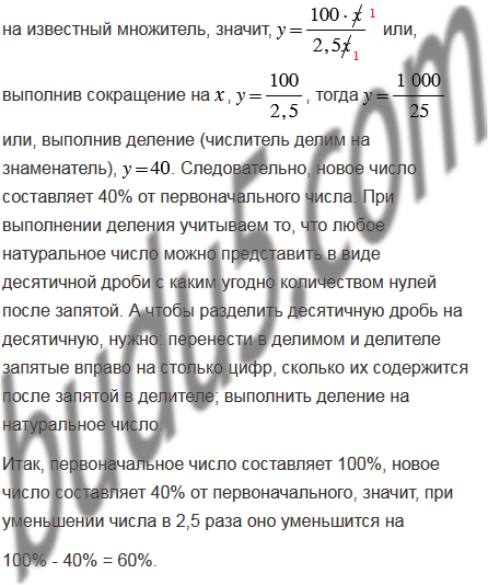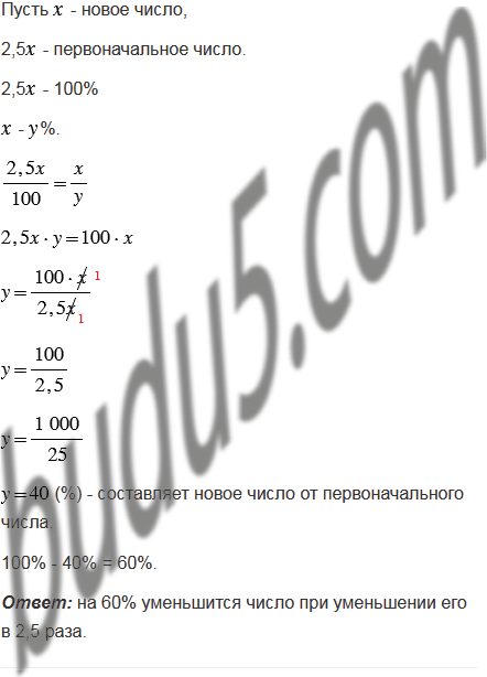 На сколько процентов уменьшится число при уменьшении его в 2,5 раза?