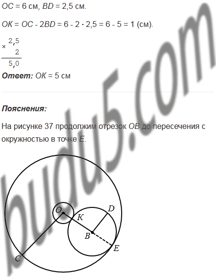 На рисунке 37 ОС = 6 см, ВD = 2,5 см. Найдите длину отрезка ОК.
