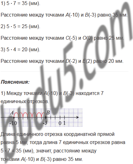 Длина единичного отрезка координатной прямой равна 5 мм. Чему равно расстояние между точками: