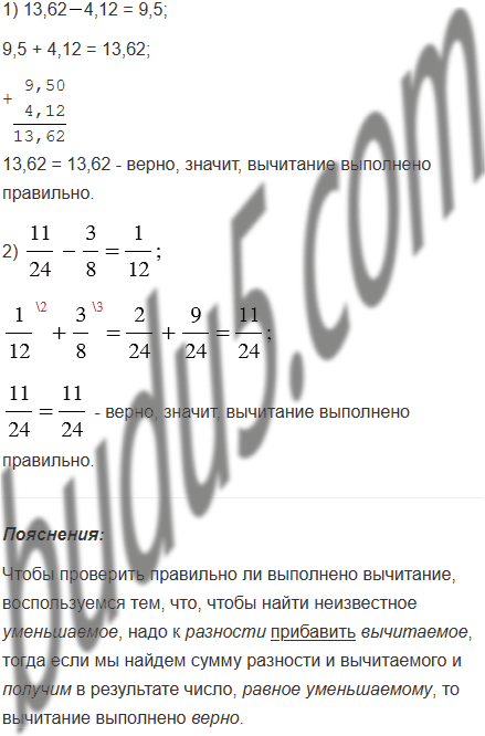 Используя действие сложения, проверьте, верно ли выполнено вычитание: