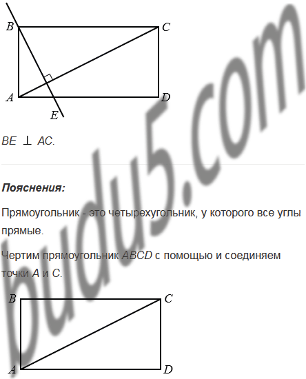 Начертите прямоугольник АВСD, соедините точки А и С. Проведите через точку В прямую, перпендикулярную АС.