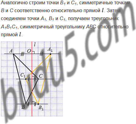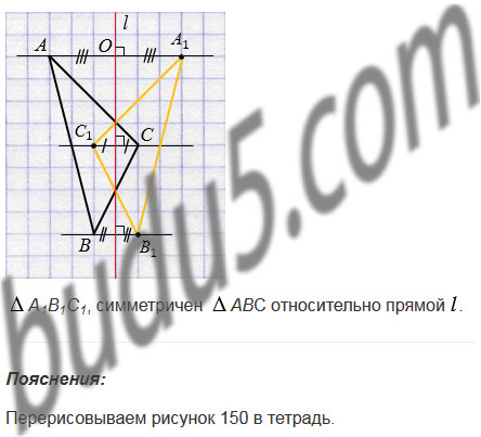 Перерисуйте рисунок 151 в тетрадь и постройте треугольник симметричный треугольнику АВС относительно прямой .