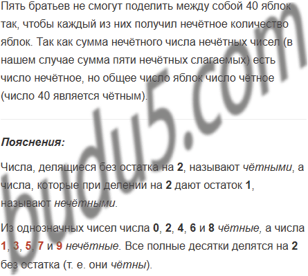 Пять братьев хотят поделить между собой 40 яблок так, чтобы каждый из них получил нечётное количество яблок. Смогут ли они это сделать?