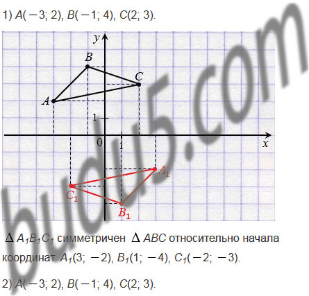 1; 4), С(2;3). Постройте треугольник, симметричный данному относительно: 1) начала координат; 2) точки Р(2; 2). Найдите координаты вершин полученного треугольника.