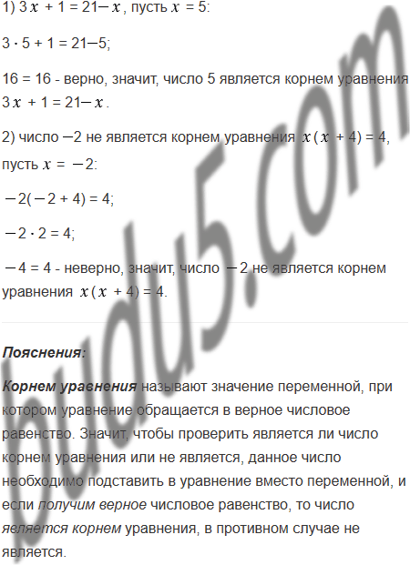 Вспомните, что называют корнем уравнения.
