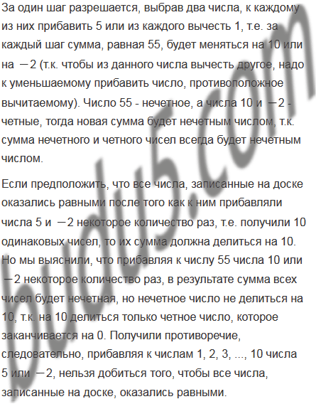 На доске написаны числа 1, 2, 3, ..., 10. За один шаг разрешается, выбрав два числа, к каждому из них прибавить 5 или из каждого вычесть 1. Можно ли с помощью этих операций добиться того, чтобы все числа, записанные на доске, оказались равными?