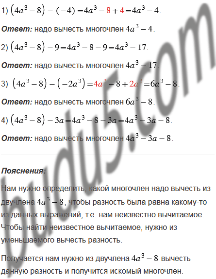 Какой многочлен надо вычесть из двучлена , чтобы разность была равна: