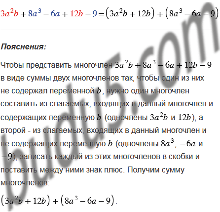 Представьте многочлен в виде суммы двух многочленов так, чтобы один из них не содержал переменной .