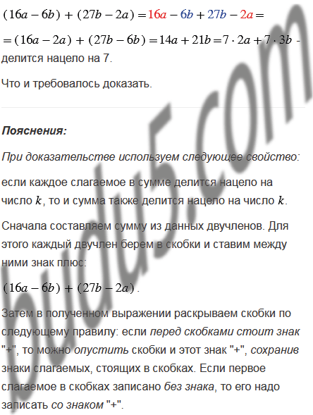 Докажите, что значение суммы двучленов и , где и - произвольные натуральные числа, делится нацело на 7.