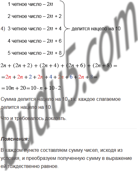 4) сумма пяти последовательных четных натуральных чисел делится нацело на 10.