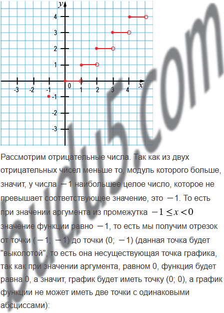 задана описательно: значение функции равно наибольшему целому числу, которое не превышает соответствующее значение аргумента. Постройте график этой функции.