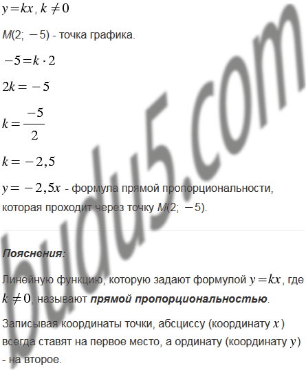 Задайте формулой функцию, являющуюся прямой пропорциональностью, если ее график проходит через точку М(2; 5).