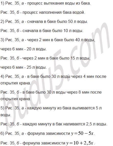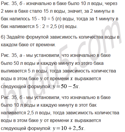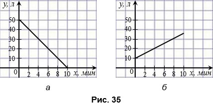 Один из графиков, изображенных на рисунке 35, отображает процесс наполнения одного бака водой, а другой - вытекания воды из другого бака.