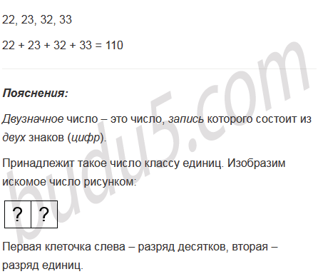 Запишите все двузначные числа, в запись которых входят лишь цифры 2 и 3. Найдите сумму этих чисел.