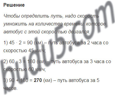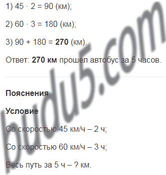 Автобус шёл 2 ч со скоростью 45 км/ч и 3 ч со скоростью 60 км/ч. Какой путь прошёл автобус за эти 5 ч?
