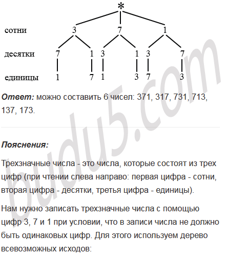 Какие трехзначные числа можно записать с помощью цифр 3, 7 и 1 при условии, что в записи числа не должно быть одинаковых цифр? Сколько таких чисел?