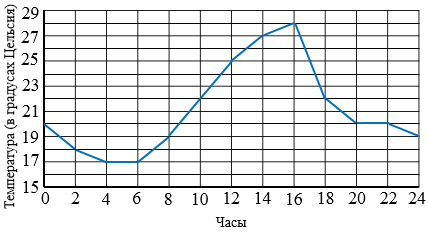 На рисунке изображен график изменения температуры воздуха в течение суток. По вертикали указана температура воздуха в градусах Цельсия, по горизонтали - время суток. На сколько градусов повысилась температура с 8 ч до 16 ч?