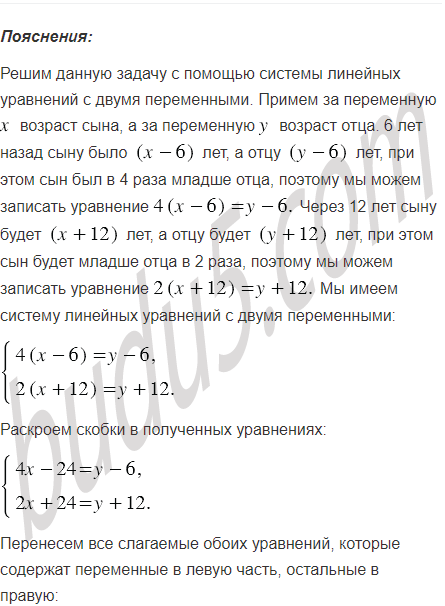 Сын 6 лет тому назад был в 4 раза младше отца, а через 12 лет он будет младше отца в 2 раза. Сколько лет отцу и сколько - сыну?