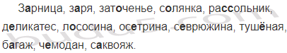 З..рница, з..ря, зат..ченье, с..лянка, ра(с, сс)ольник, деликатес, л..сосина, ос..трина, с..врюжина, туш..ная, б..гаж, ч..модан, с..квояж.