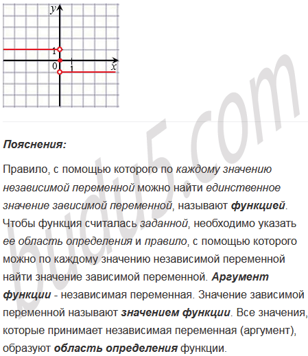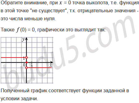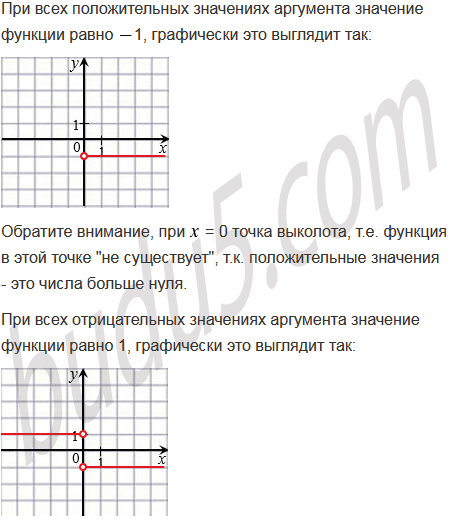 При всех положительных значениях аргумента значение функции равно 1, при всех отрицательных - равно 1, а (0) = 0. Постройте график функции .