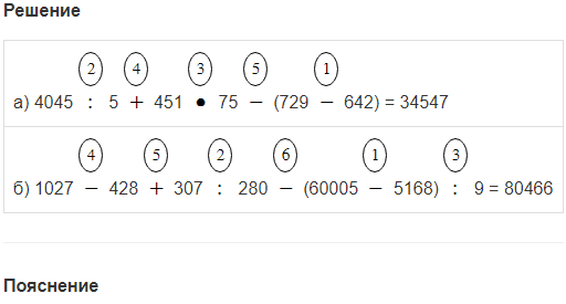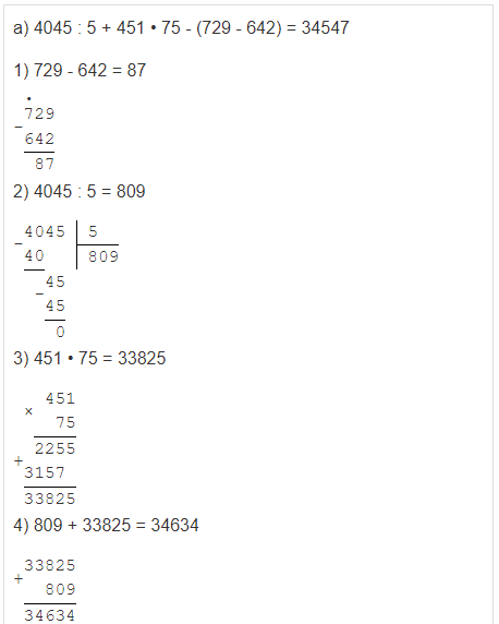 | а) 4045 : 5 + 451 • 75 - (729 - 642) |