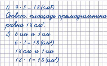 3. 1) Вычисли площадь прямоугольника, длины сторон которого 9 см и 2 см.