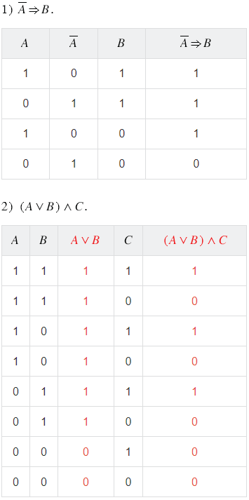 1) Конъюнкцией (или логическим произведением) двух высказываний А и В называют высказывание, которое истинно, если каждое из высказываний А и В истинно, и ложно, если хотя бы одно из них ложно. Конъюнкцию высказываний А и В обозначают так: А