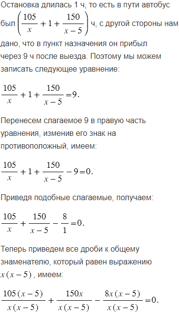 пути, он остановился на 1 ч, а затем продолжил движение со скоростью на 5 км/ч меньше начальной. Найдите начальную скорость автобуса, если в пункт назначения он прибыл через 9 ч после выезда.