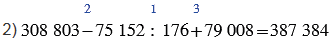 2) 308 803 - 75 152 : 176 + 79 008;