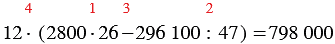 Красные числа, стоящие сверху над действиями, показывают в каком порядке нужно выполнять действия.