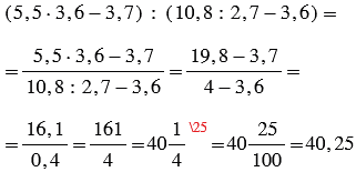 (5,5 • 3,6 - 3,7) : (10,8 : 2,7 - 3,6)
