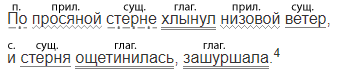 Ветер уже дышал духовитой дождевой влагой а через минуту скупой и редкий пошёл дождь. По просяной стерне хлынул низовой ветер и стерня ощетинилась зашуршала.4 Степь наполнилась сухим ропотом прошлогодних бур..янов. Под самой тучевой подошвой кренясь ловя распростертыми крыльями воздушную струю плыл на восток ворон. Бело вспыхнула молния и ворон уронив3 горловой баритонистый клёкот вдруг стремительно ринулся (в)низ. На секунду весь осия..иый солнечным луч..м он сверкнул как охвач..ный полымем смол..ной факел. (Не)долетев до земли сажен (пол)сотни ворон круто выпрямился зам..хал крыльями и тотчас(же) с оглушительным сухим треском ударил гром.5 (По М. Шолохову)