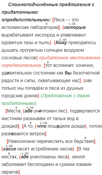 Леса это исполинские лаборатории которые вырабатывают к..слород и улавливают ядовитые газы и пыль. Кому приходилось дышать прогретым солнцем воздухом сосновых лесов тот вспомнит конечно уд..вительное состояние как(бы) безотчётной радости и силы охватывающее нас как только мы попадём в леса из душных городских3 домов.