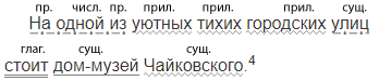 На одной из уютных тихих городских улиц стоит дом музей Чайковского.4 Сюда постоянно приезжают почитатели таланта великого композитора а дважды в год в день рождения и в день смерти П. И. Чайковского самые известные музыканты исполняют3 здесь1 его произведения.